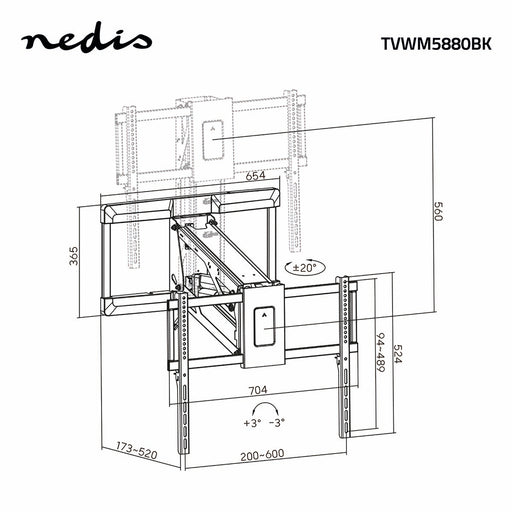 Wandmontage bis zu 80 Zoll - Drehen und Neigen - 1 Meter von der Wand entfernt
