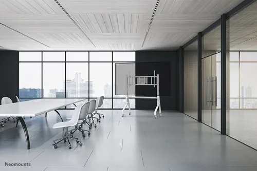 Das Neomounts FL50-575WH1 MOVE Go XL bietet Ihnen eine vielseitige und sichere Lösung für die mobile Aufstellung von Großbildschirmen in jedem Raum.