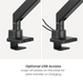 Für zusätzliche Flexibilität werden VESA-Adapter mitgeliefert, wodurch der Arm mit verschiedenen VESA-Mustern kompatibel ist. Das macht ihn unter anderem geeignet für große Bildschirme wie den Samsung Odyssey Ark 55”. Zudem ermöglichen die praktische Schnellspann-VESA-Platte und die Montage von oben am Schreibtisch eine schnelle und einfache Installation.
